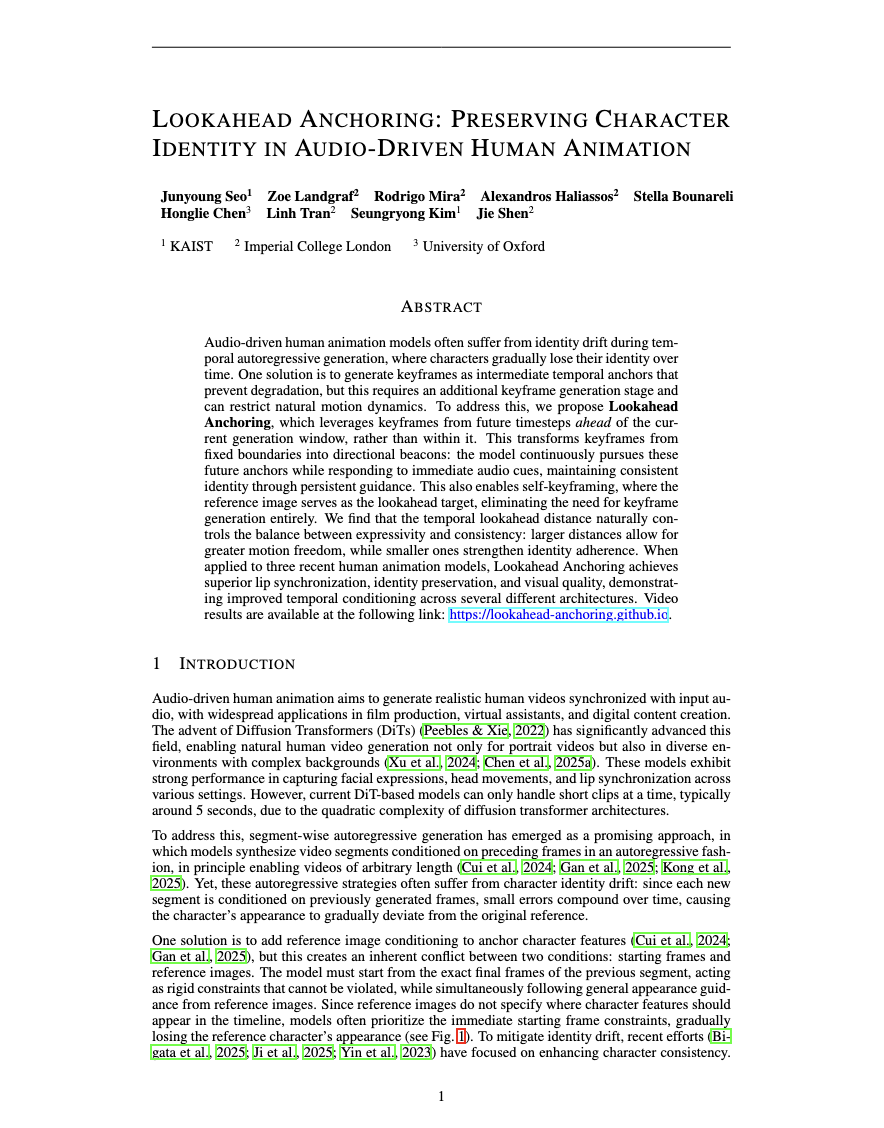 Our Lookahead Anchoring is a simple-yet-effective method designed to stay stable against error accumulation and identity drift, even within straightforward temporal autoregressive approaches.